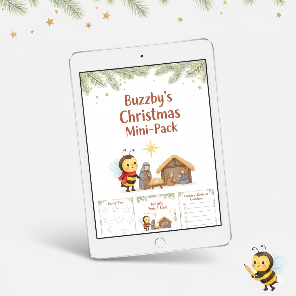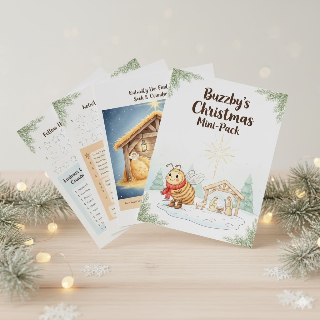 Bring the heart of Christmas into your home or classroom with Buzzby’s Christmas Mini-Pack, a warm and joyful activity set created for preschool and early elementary learners. Inspired by the beloved Clover Meadow Adventures series, this pack invites children to explore the nativity story, develop early learning skills, and grow in kindness, gratitude, and wonder.